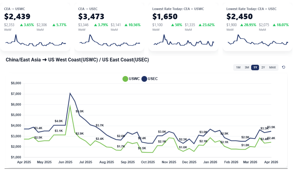 Carrier Desperation for Volume: After attempting to jack up prices in late March, carriers saw volume vanish, forcing them to pivot and lower rates slightly to attract any available cargo.