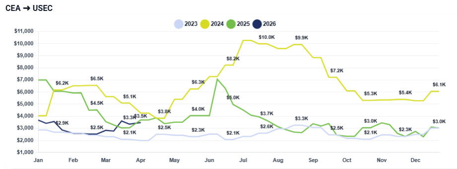 CEA to USEC: Rates for the East Coast are currently holding between $2,800 and $2,900 per FEU.