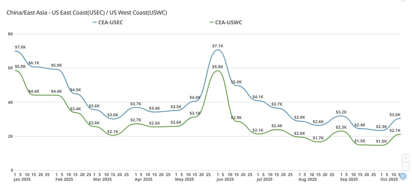 China–US ocean spot rates eased WoW as early-September GRIs faded. USWC nears trough, USEC softens, and fierce forwarder pricing persists ahead of Golden Week.