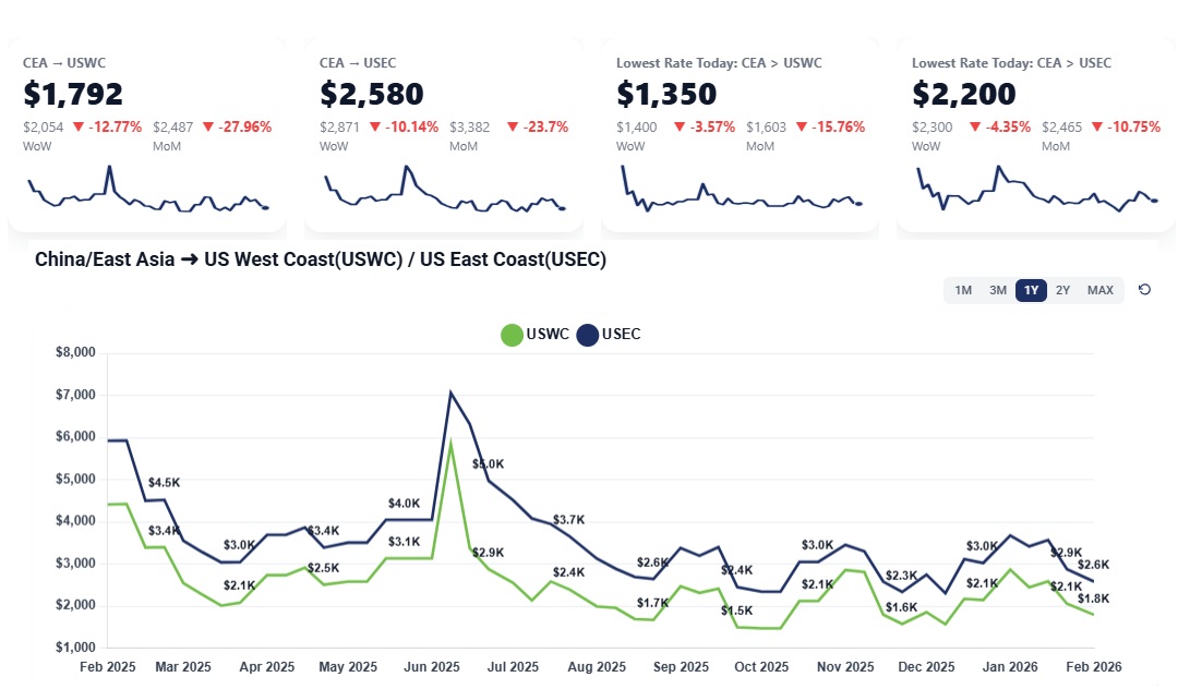 Booking Completion: The industry has essentially finished all bookings for the month of February, as the holiday shutdown in Asia effectively halts new manufacturing and shipping activity.